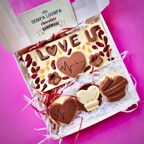 Stuffed pralines bonbonniere: 9 pralines, 9 types of filling to choose from or a box of surprises - OOMPA LOOMPA MIX Bonbonniere price - 350 baht